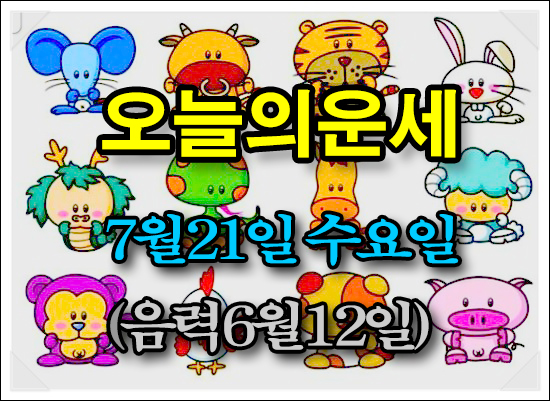 하루시작 무료운세 띠별운세 오늘의운세, 7월21일 수요일 (음력6월12일)을 알려 드립니다.