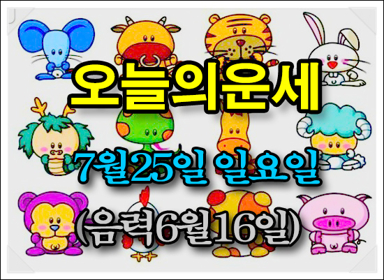 하루시작 무료운세 띠별운세오늘의운세,7월25일 일요일 (음력6월16일)을 알려 드립니다.