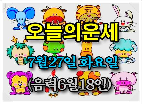 하루시작 무료운세 띠별운세오늘의운세,7월27일 화요일 (음력6월18일)을 알려 드립니다.
