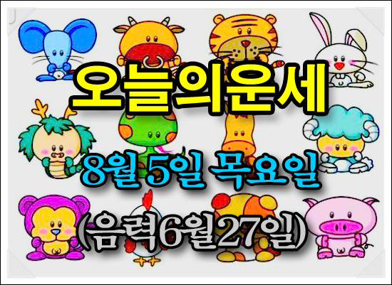 하루시작 무료운세 띠별운세오늘의운세,8월5일목요일 (음력6월27일)을 알려 드립니다.