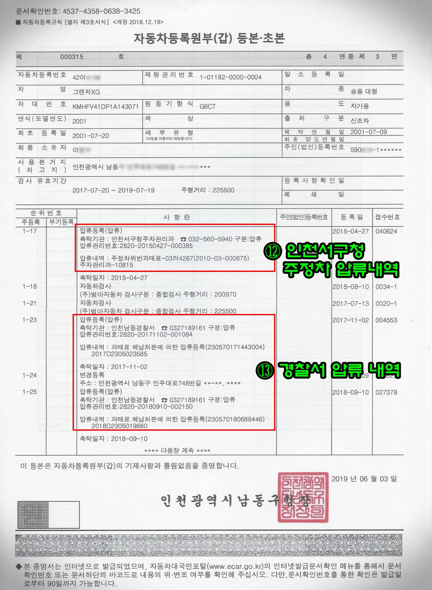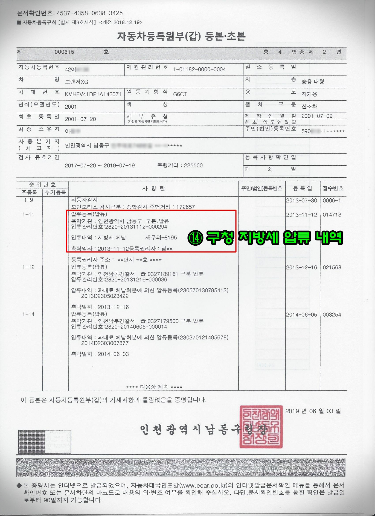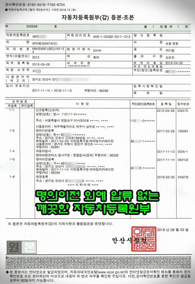 다시 한 번 자동차등록원부를 발급받아서 확인하시면