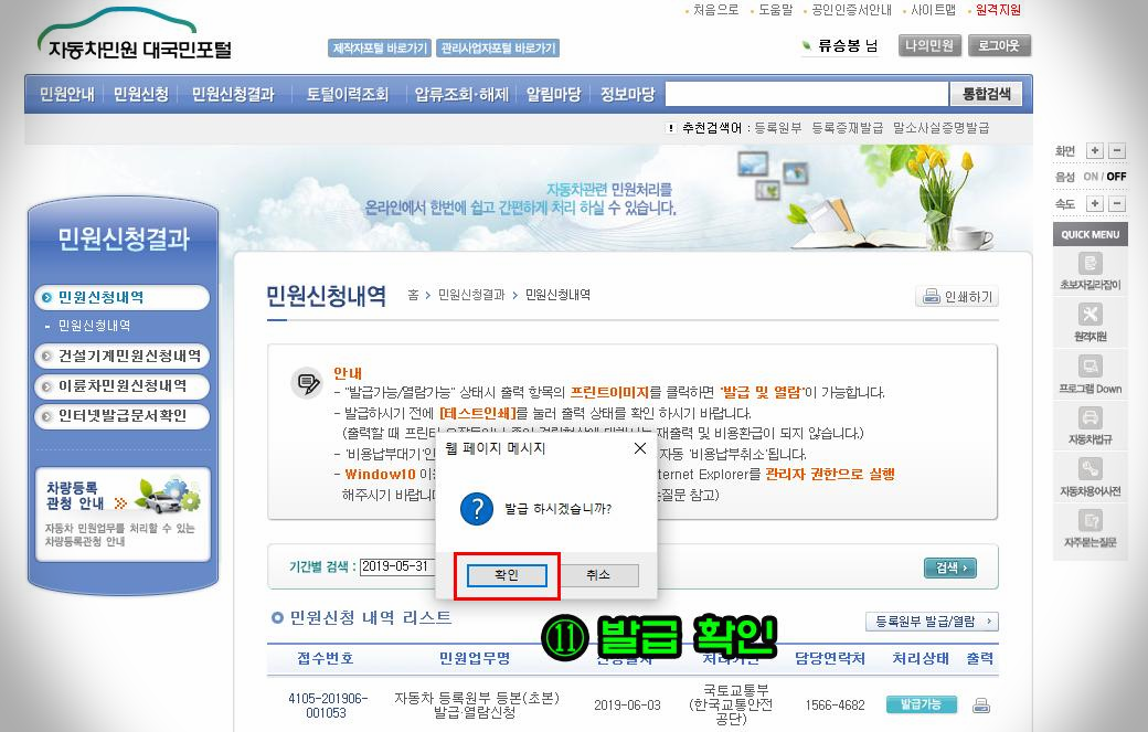 원하시는 자동차등록원부를 발급하실 수 있으실 겁니다.