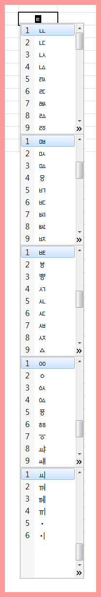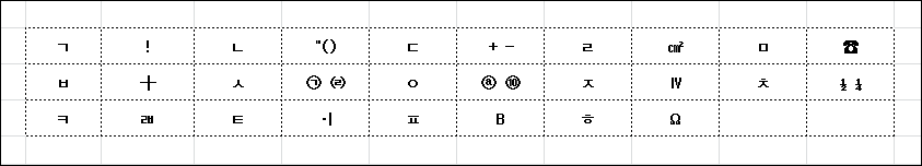 특수문자는 'ㄱ' ~ 'ㅎ' 까지 해당되는 문자가 다 다르다.