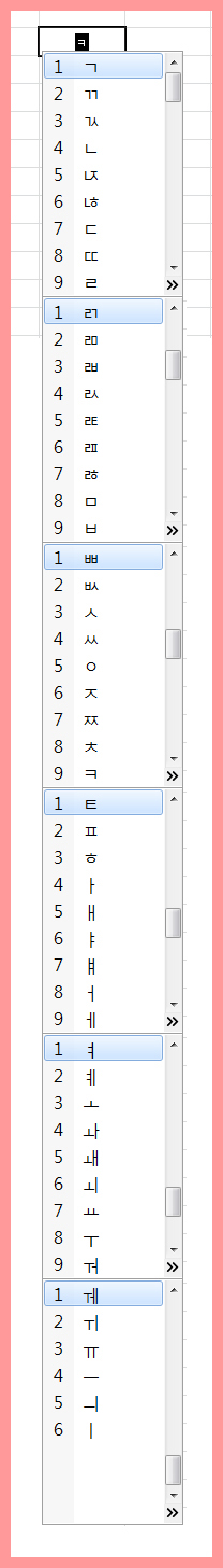 'ㄱ' ~ 'ㅎ' 까지의 각각의 특수문자가 어떤 것이 있는지 알아본다.