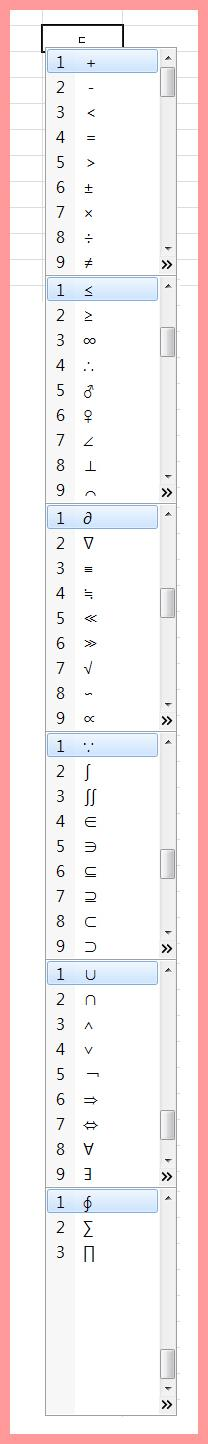 리본 메뉴의 기호를 선택하면 다양한 기호를 선택할 수 있는 기호모음들이 나타난다.