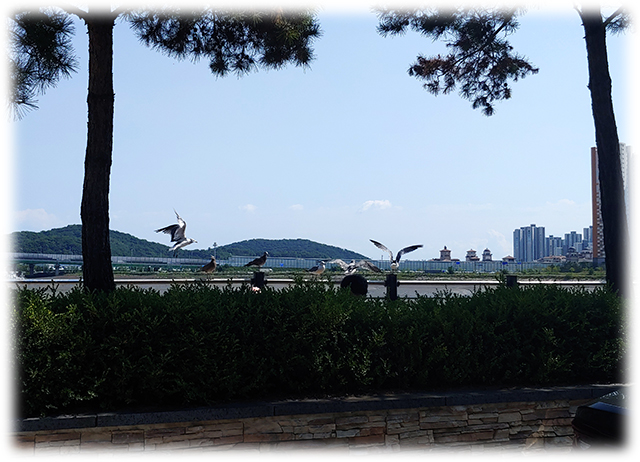 이제 자리에 앉아서 창 밖을 보게 된다.