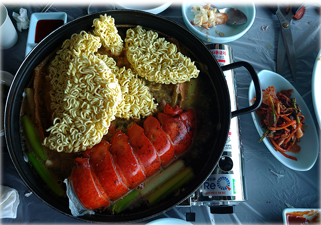 붇러운 속살의 랍스타를 거의 다 먹고 나서 랍스타 라면을 먹게 되었다.