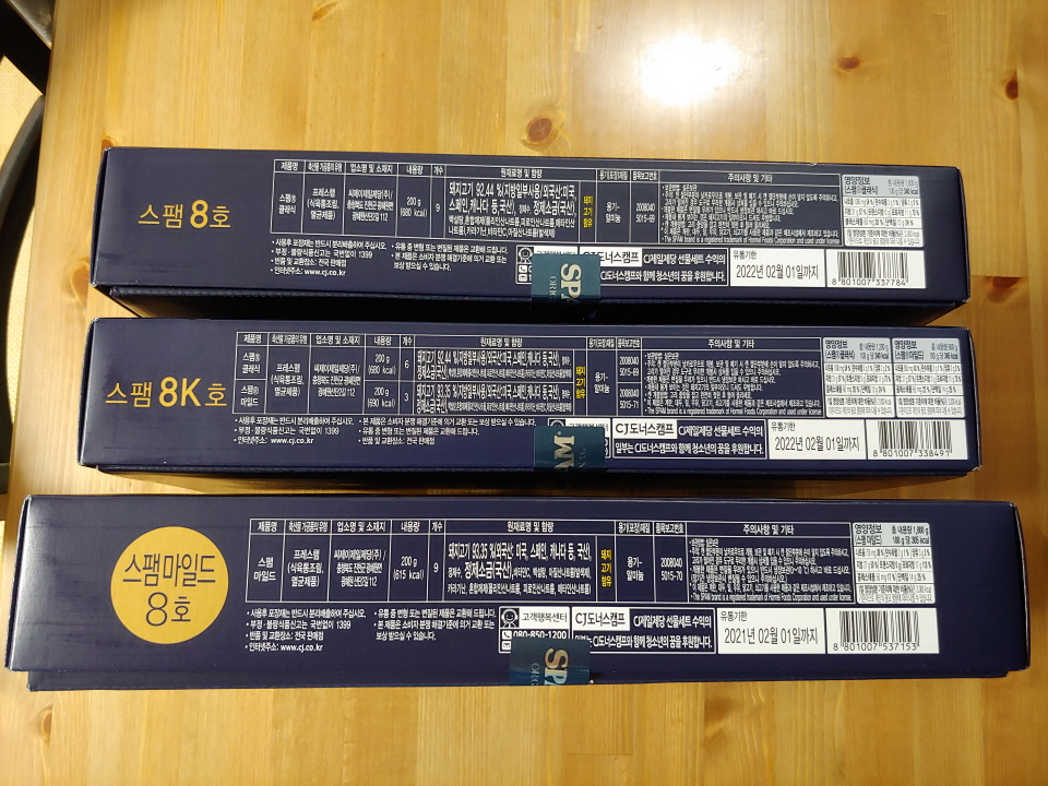 두번째, 스팸8K호 / 스팸클래식 200g , 6개와 스팸마일드 200g , 3개가 들어있어요.