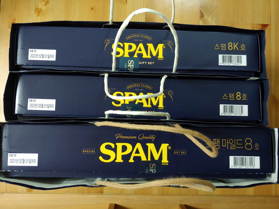이번에 스팸선물세트를 받아보고 너무 궁금한 점이 생겼어요.